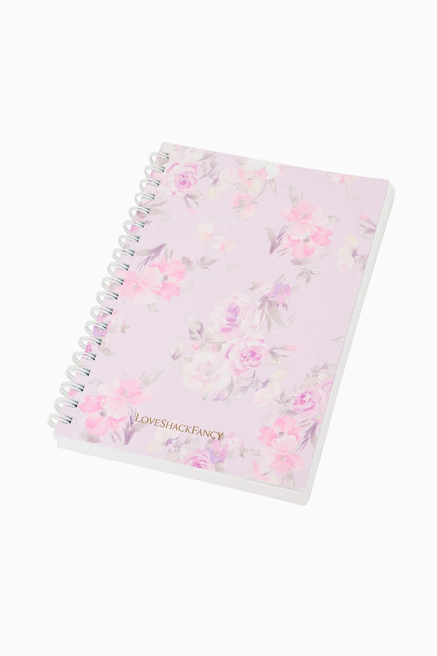 Introducing the LoveShackFancy Spiral Notebook. This back-to-school essential features our signature heirloom floral prints on the front and back cover. The spiral white notebook has 100 common leaves lined text pages.