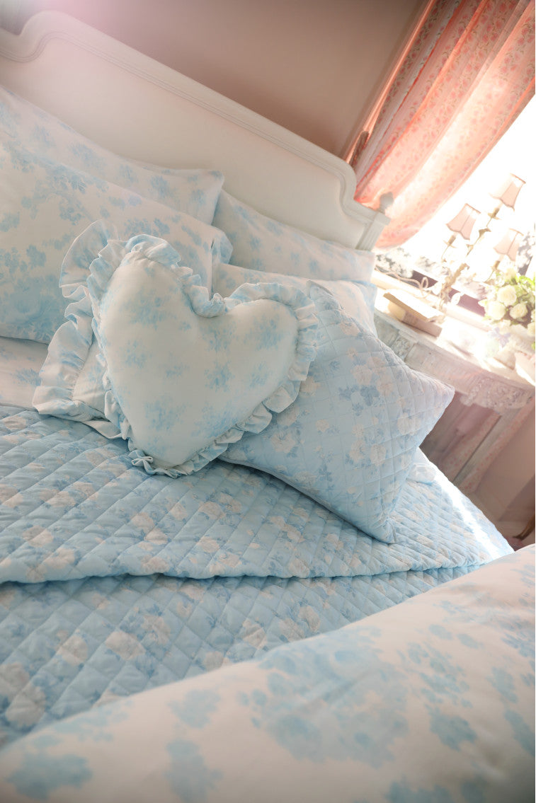 Home is where the heart-shaped pillow is. Our best-selling pillow is back – this time in our new, ultra-cozy bedding quality with a soft-to-the-touch and comfortable feel. The pillow features our favorite heirloom floral print and ruffle-adorned edges.