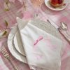 Dress up everyone’s spot at the table with this pretty printed placemat with an intricate, vintage-inspired pink print and a custom lace trim. The piece is finished with a charming scallop adornment.
