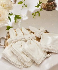Introducing the Victorian Napkin Ring. This home essential freshens up your tablescape with a charming bow detail and custom lace trims. Because everything’s better with a bow.