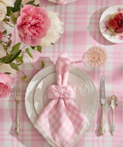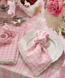 Give your tablescape a pretty pink touch with a yarn-dyed gingham napkin ring complete with a bow. Sweet details for special moments.