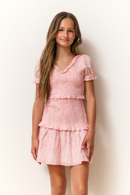 The Banson Dress returns. Designed from a cotton voile, the piece arrives with our signature bow fleur print reimagined into tiny ditsy florals printed all over. This pretty piece features our Italian-inspired print of the season, short cap sleeves, smocking at the bodice, ruffle tiers, and a flowy skirt.