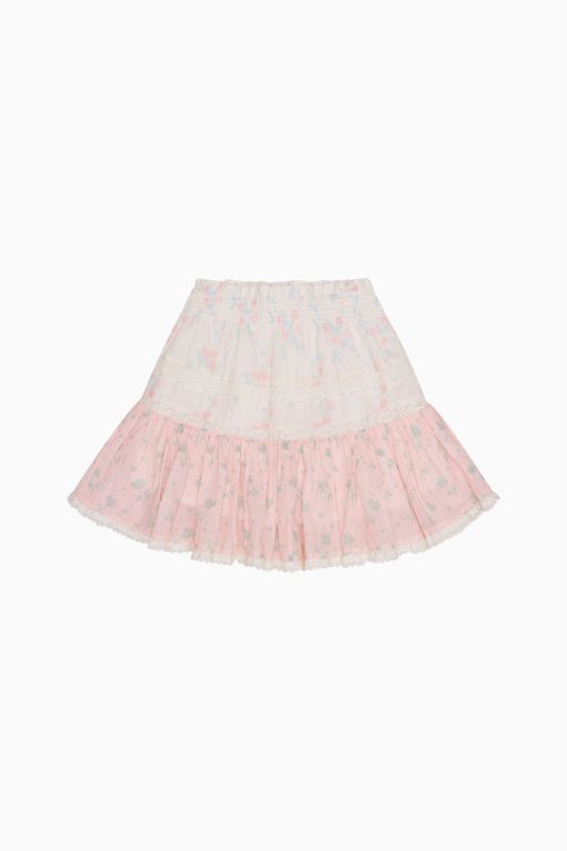 So in love with the Berkshire Skirt. This airy mini stuns with a mixed print featuring heirloom florals and tiny ruffles and pleats.