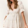 Our girls are feeling easy, breezy in the Galine Top. This sunshine piece features pretty eyelet details, thin straps, and an airy silhouette with a scallop detail at the hem. Pair with the Caelia Skirt for a full set.