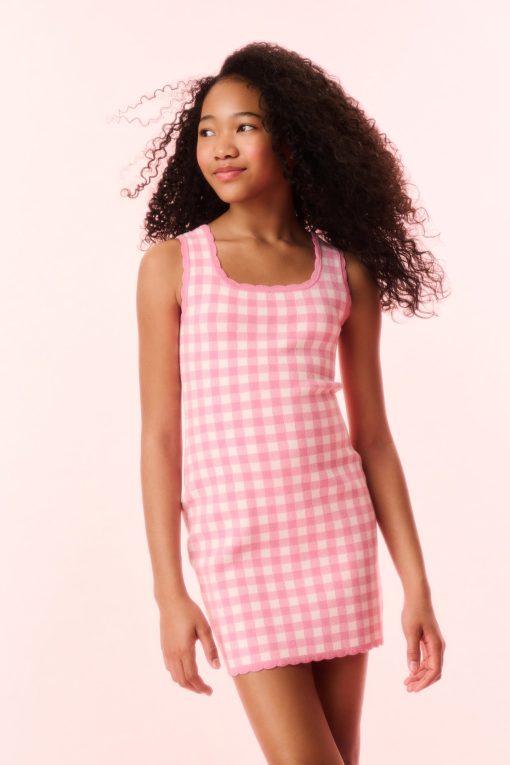 LoveShackFancy Kid’s Kid’s Girls Sereia Checkered Knit Dress | Pink Pearl