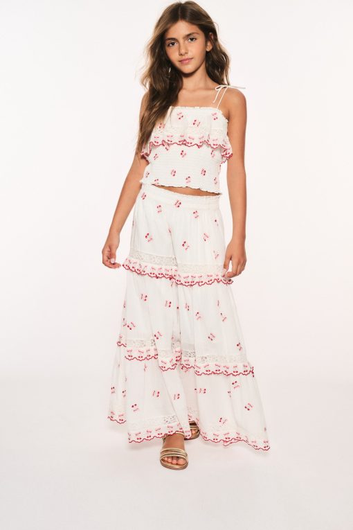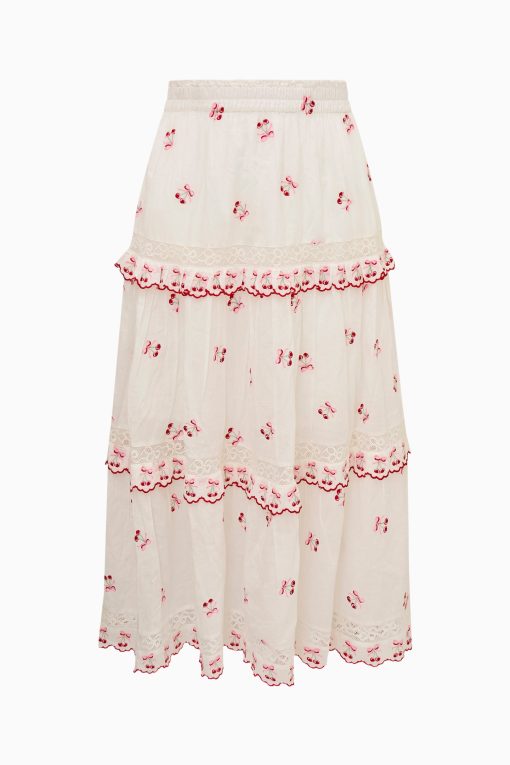 LoveShackFancy Kid’s Kid’s Girls Zinna Cotton Cherry Maxi Skirt | Optic White