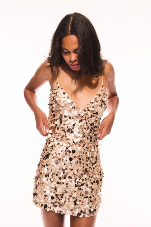 The Aurorlia Skirt is the must-have party piece of the summer. This piece stuns with shimmering large payettes done in a beautiful gold. With a body-hugging silhouette, the flirty skirt is finished with a zipper. Pair with the Vivaldina Top for a full set.