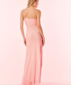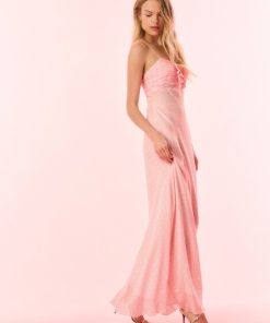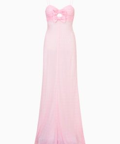 Put on the pretty with the Belby Dress. This stunning event dress debuts with a playful Italian-inspired polka dot print on a drapey, viscose chiffon fabric. Lightweight and lovely, this evening dress begins with thin spaghetti straps above a bust with ruching adorned with two bows at center front with a keyhole cutout which falls to a body-skimming, A-line midi skirt.