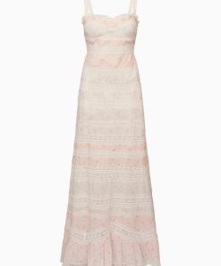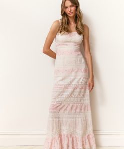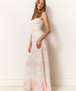 Effortlessly chic in the Carwen Dress. Designed from a cotton voile fabric, the Victorian-inspired maxi dress features a pretty printed lace and mixed print effect along with vintage-inspired laces stripped throughout. Beginning with lace straps, the flattering dress has smocking at the back bodice for ease and comfort and a slim, a-line skirt that falls to a sweepy flounce.