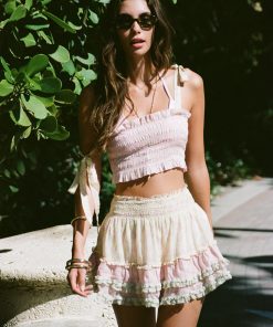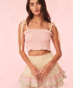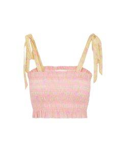 Our Corbin Top is back, this time in a mixed print, color blocking medley on a lightweight cotton voile. The smocked crop top hugs your body in all the right ways and features double layered straps. Pair with the Phia Skirt for a full set.
