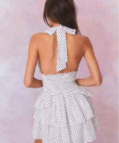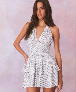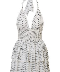 LoveShackFancy Women’s Deanna Polka Dot Halter Mini Dress | Antique White