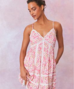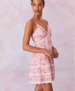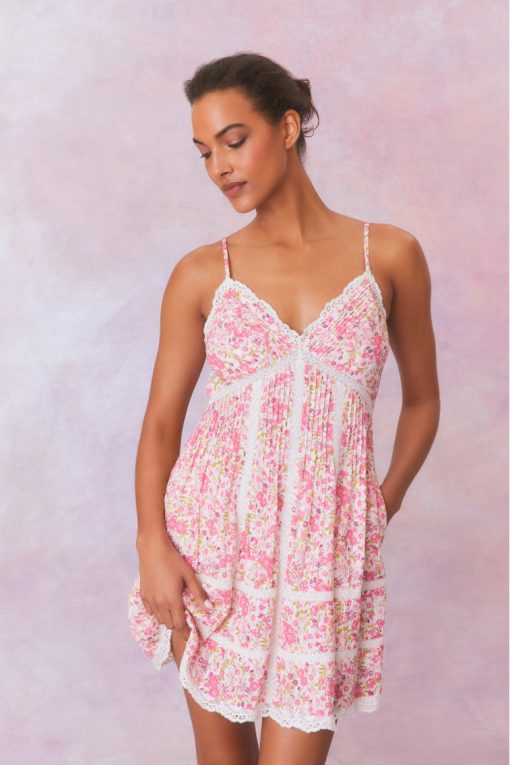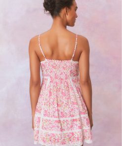 as part of our Upcycled Icons Collection, a limited-edition, sustainable capsule featuring our best-selling silhouettes made from remnant LoveShackFancy fabrics. Warm weather perfection, this flirty mini dress has a flattering silhouette with lace insets and pintucking details. The dress features a smocked back, spaghetti straps, and an airy skirt finished with lace.