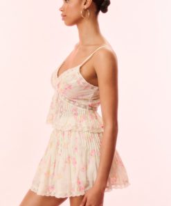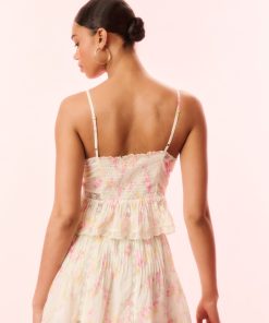LoveShackFancy Women’s Elsette Cotton Floral Top | White Peach