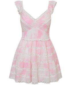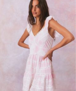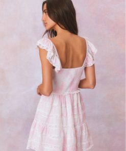 as part of our Upcycled Icons Collection, a limited-edition, sustainable capsule featuring our best-selling silhouettes made from remnant LoveShackFancy fabrics. She’s airy, dreamy, and easy to wear. This must-have mini begins with an open v-neck with elasticated flutter sleeves before falling to a smocked waist for a comfortable and a flattering fit. The bodice and skirt feature a sweet medley of lace and embroidery arrangements throughout. This piece is complete with pockets.