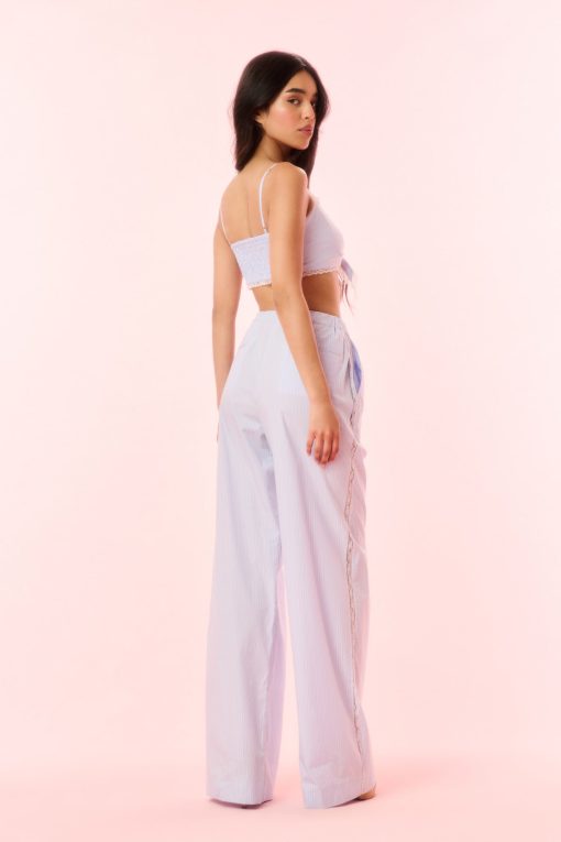 Feeling cute in the Helia Pant. These pajama pants debut with a crisp poplin fabric for the summertime. The bottoms feature elastication at the waist, pockets, and a breezy silhouette.
