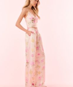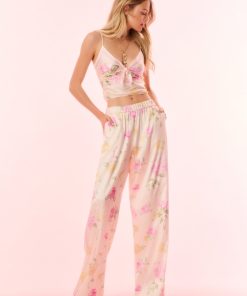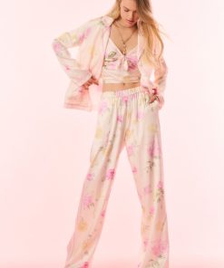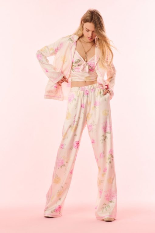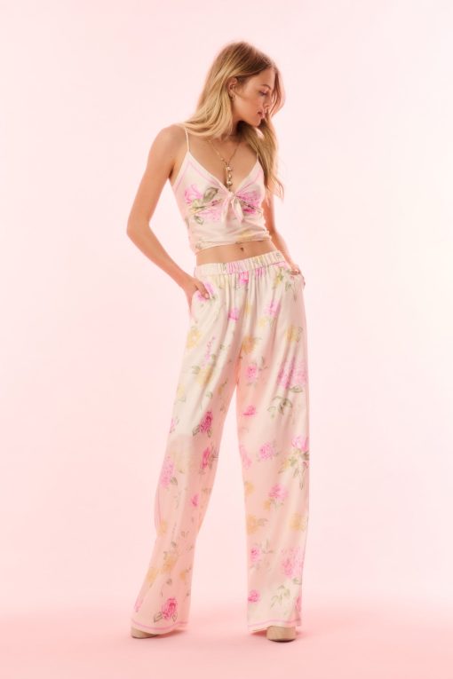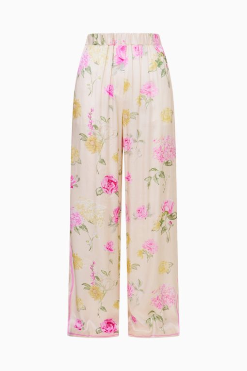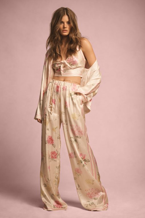 Introducing the Helia Pant. These elevated pajama pants feature an Italian-inspired print with hand-painted flowers in a romantic arrangement and stripes down the sides. With a flowy wide leg, these bottoms have an elasticated waist for easy pull on, back welt pockets, and side pockets. Pair with the Renetta Top for the full set.
