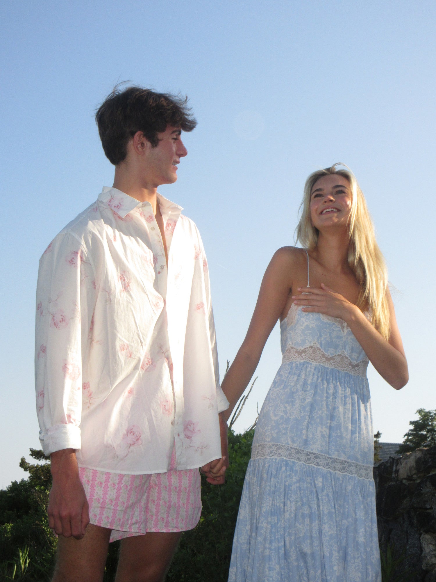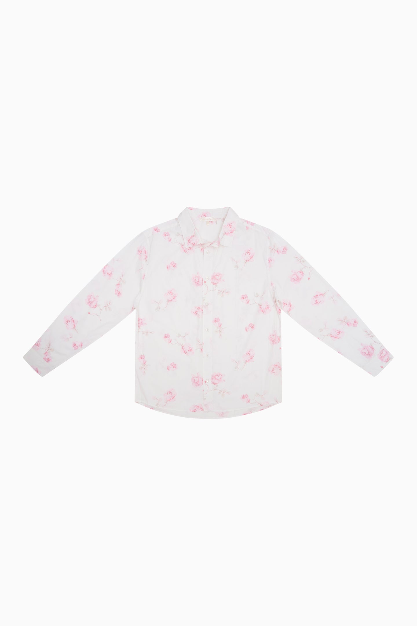 Introducing our first-ever unisex Hudley Shirt. Match your beau with this crisp, cotton poplin button down featuring our signature fragrance floral prints. With a relaxed fit, the piece arrives with a center-back box pleat for ease, a collared neckline, long cuffed sleeves, and is finished with a shirttail hem.