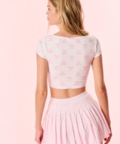 Feeling fit & flirty in the Kudura Top. This short sleeve active top is designed for low impact movement using our ultra-soft, breathable fabric. The piece features removable cups, a fitted silhouette, and shirring at the center front bust for a flattering and feminine look. Pair with the Dancia Skirt for a full set.