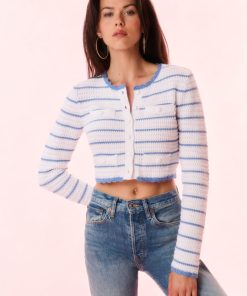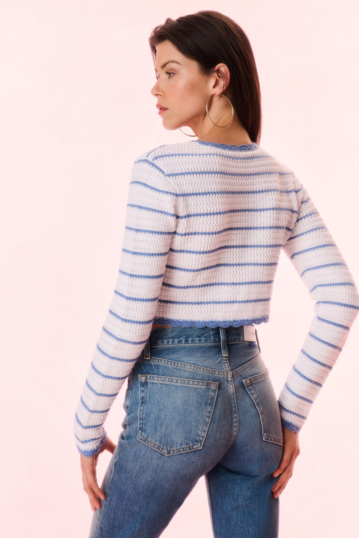 LoveShackFancy Women’s Lamiya Striped Crochet Cardigan | Maritime Stripes