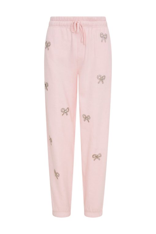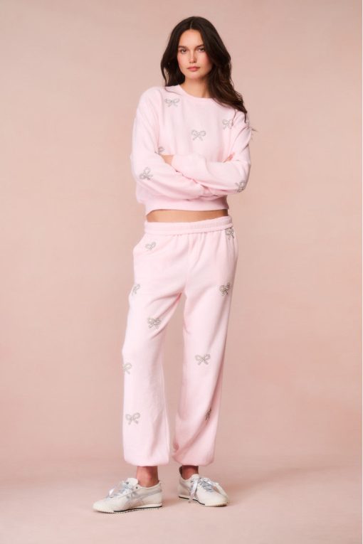 Loving on the Lillia Sweatpant. Designed from an ultra-soft, brushed back fleece, these cozy pants feature thoughtfully placed crystal bows on the front of the plants. Pair with the Amiyla Pullover for a full set.