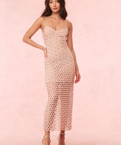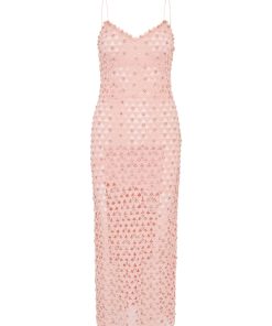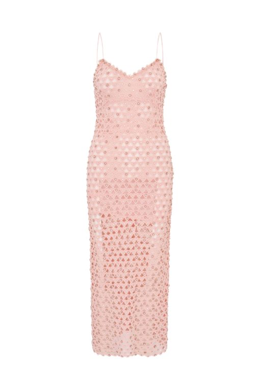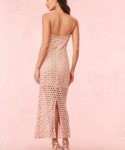 Be the best dressed in the Lunaria Dress. This dreamy, maxi column dress debuts with a lightweight, cotton fabric featuring heart-shaped lace and is fully embellished with rhinestones all over giving it our signature shimmer. With slim and flattering fit, the piece begins with adjustable spaghetti straps and a slight v-neckline, a center back slit, and zips up on the side.