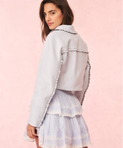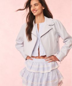 LoveShackFancy Women’s Rheisa Cropped Leather Moto Jacket | Celestial Blue