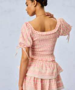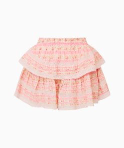 LoveShackFancy Women’s Ruffle Mini Heirloom Print Skirt | Strawberry Macaroon