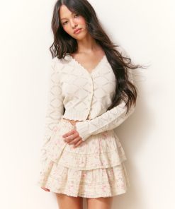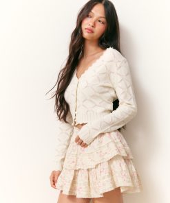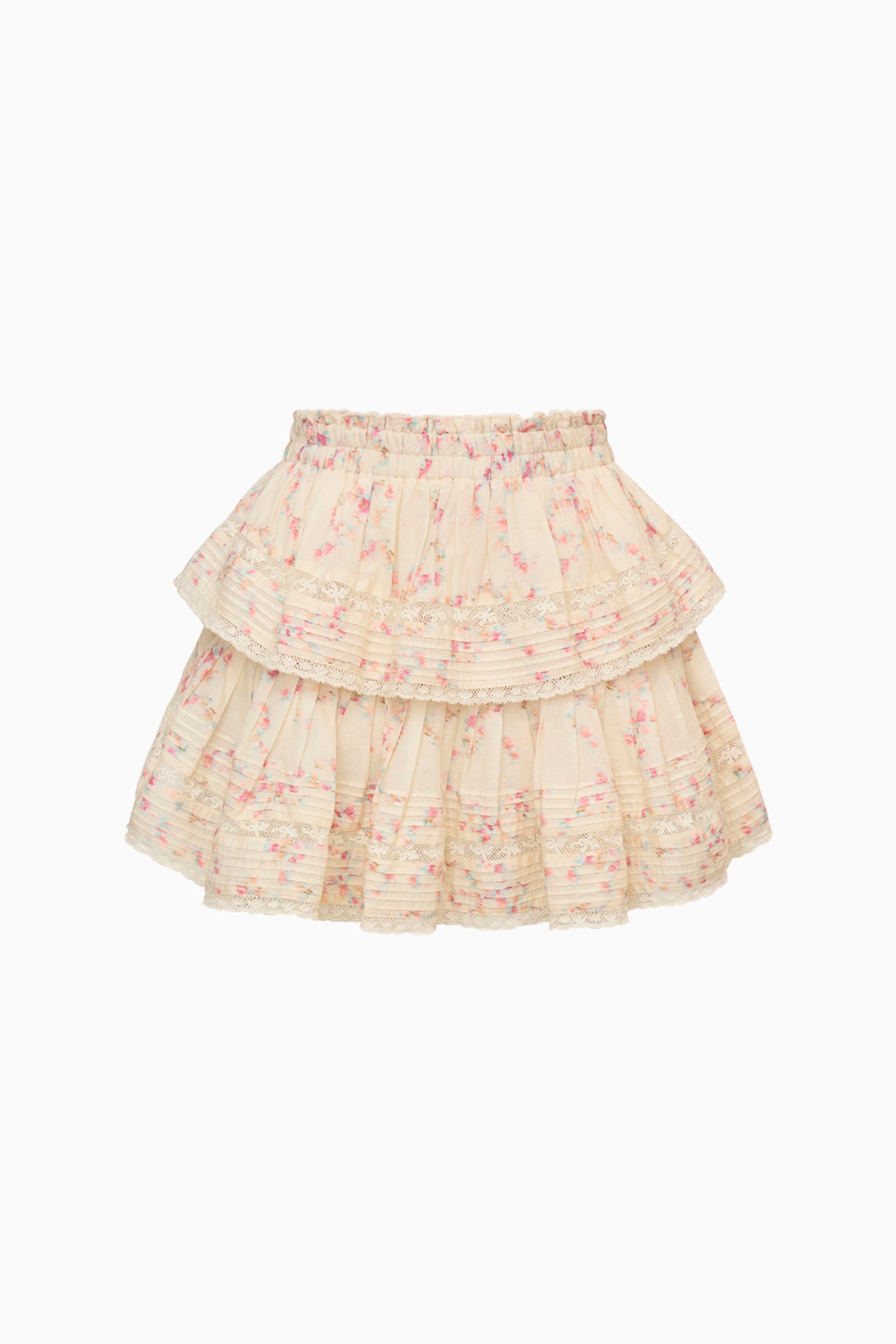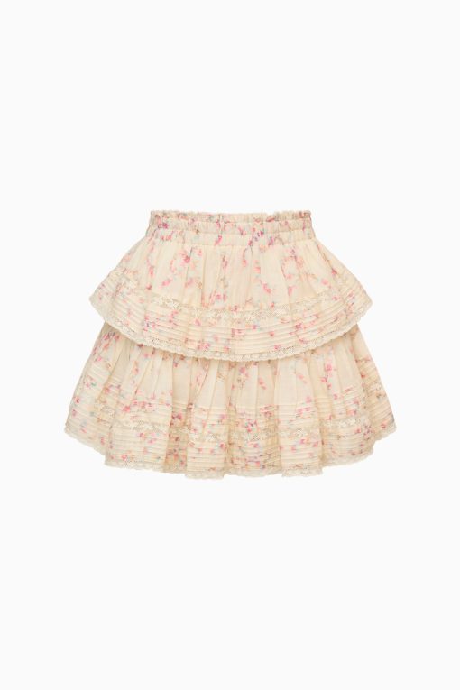 Our best-selling Ruffle Mini Skirt returns for the season with organic cotton voile fabric arriving with our signature bow fleur print reimagined into tiny ditsy florals printed all over. She features intricate inset lace trims and allover pintuck details. The elasticated waistband offers flexibility in comfort and styling. Tiered ruffles exude effortless femininity. The mini is finished with a frayed, raw hem for added playfulness.