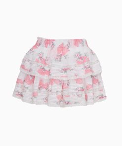 Our best-selling Ruffle Mini Skirt returns as part of our Heirloom Print Capsule featuring our signature Rosa Beaux print made-to-match our Hair & Body Perfume Mists. She features intricate inset lace trims and allover pintuck details. The elasticated waistband offers flexibility in comfort and styling. Tiered ruffles exude effortless femininity. The mini is finished with a frayed, raw hem for added playfulness.