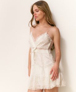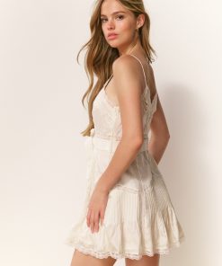 LoveShackFancy Women’s Sibelle Silk Ribbon Mini Dress | Ivory