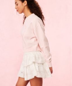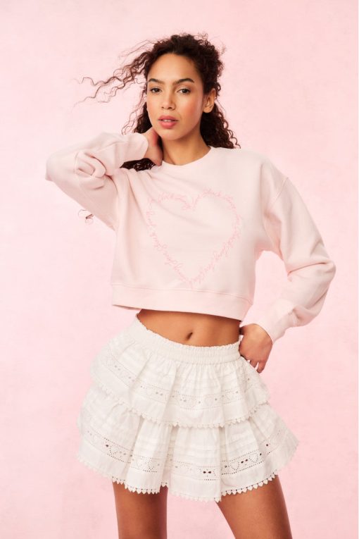 So in love with the Aneria Pullover. Ultra-soft and cozy, this pullover features a brushed back soft fleece fabric printed with an infinity heart graphic with our name LoveShackFancy outlining the shape. This pretty sweatshirt is for the romantics.