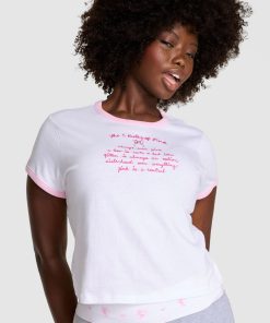 Introducing the Retro Cotton Tee from the exclusive, limited-edition PINK x LoveShackFancy collaboration.